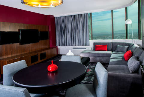 Comfortable and well-appointed rooms and suites are decorated with the D’s signature red and black tones with just a hint of vintage Vegas styling, complete with wooden headboards, striking art prints and leather armchairs that lend the rooms a vibe of urban cool. Sleek and modern, rooms come equipped with amenities such as hairdryers, desktop USB hubs, 32-inch HD TVs, high-speed internet and bath products by Bath & Body Works.