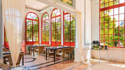 Situated in the quiet neighbourhood of Alto Santo Amaro, the hotel is within easy reach of the main sights. Head three miles to Belem, which is home to the ornate Jeronimos Monastery, Tower of Belem and the symbolic Monument of the Discoveries. A four and half mile journey will take you to São Jorge Castle for panoramic views over the pastel buildings. Stroll five miles to the postcard-pretty Alfama region. Wander its winding cobblestone lanes and admire tightly packed buildings adorned in shades of lemon and trademark azulejo tiles. Speaking of tiles, head to Miradouro de Santa Luzia, just five and a half miles away. This lookout point is decorated with royal blue tiles and striking bougainvillea, framing Alfama’s rust-hued rooftops. Lisbon’s Portela Airport is 7 miles away from the hotel.